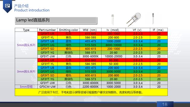 直插LED灯珠具有高亮度,发光角度小,颜色多样,设计简单及防水性能优异,广泛应用于车灯、手电和户外显示屏领域等